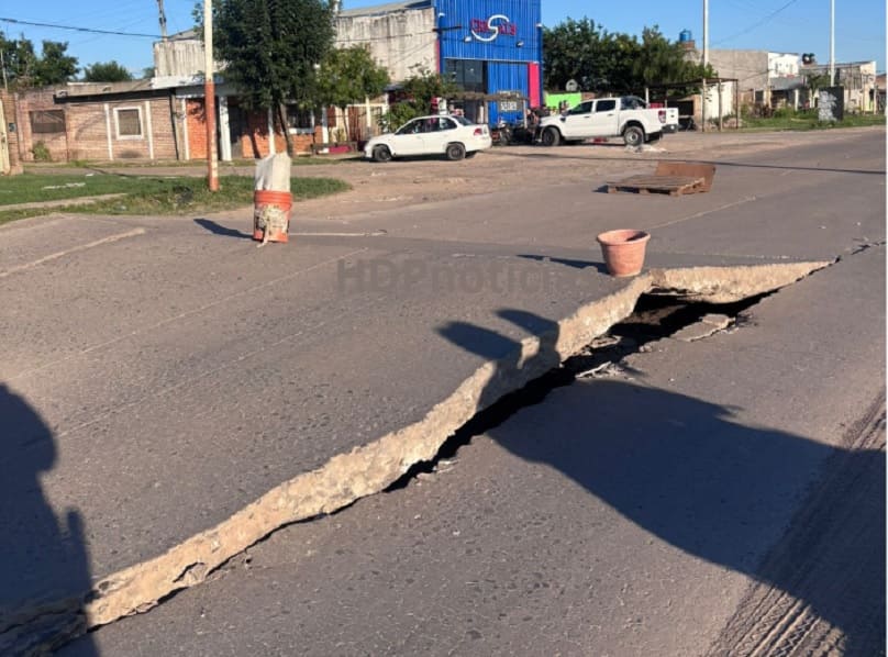 El pavimento de la avenida Soberanía Nacional a la altura del 3700, en la zona sur de Resistencia, experimentó una tremenda falla que afectó ambos carriles.