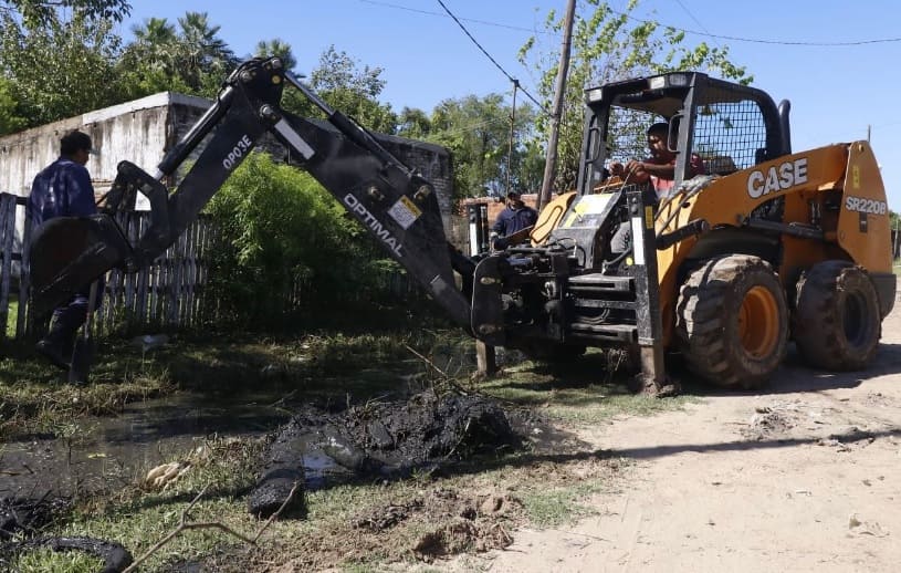 Operarios y maquinarias de organismos provinciales como Sameep y Vialidad Provincial, el Gobierno encaró tareas de limpieza de zanjas y reservorios en Villa Forestación, en Barranqueras.